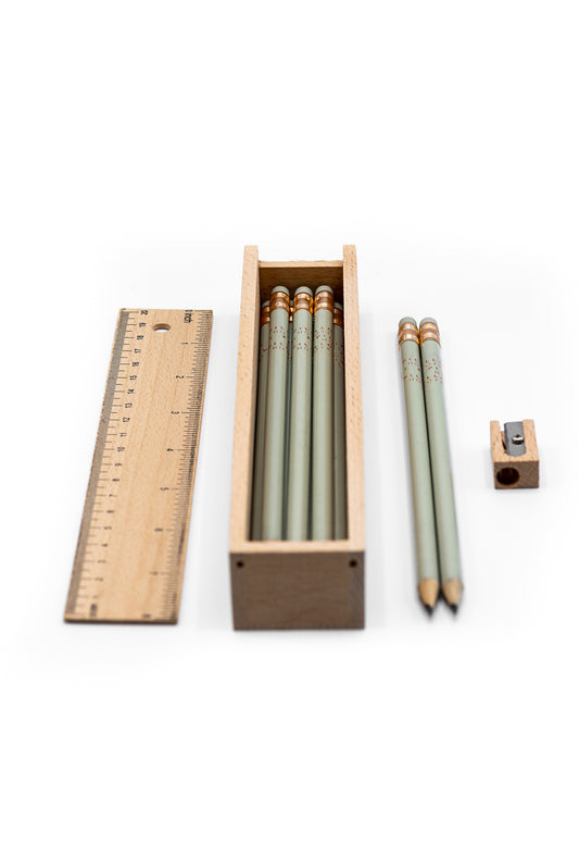 Potloden in houten doosje